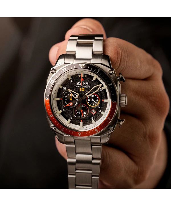 AVI-8 Hawker Hunter Atlas Dual Time Chronograph Raven Black Dial Quartz AV-4100-11 Men's Watch