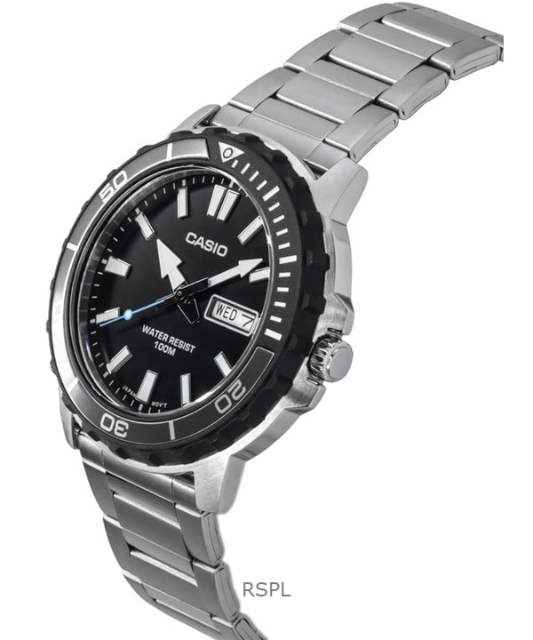 Casio Standard Analog Stainless Steel Black Dial Quartz MTD-125D-1A3V 100M Men's Watch