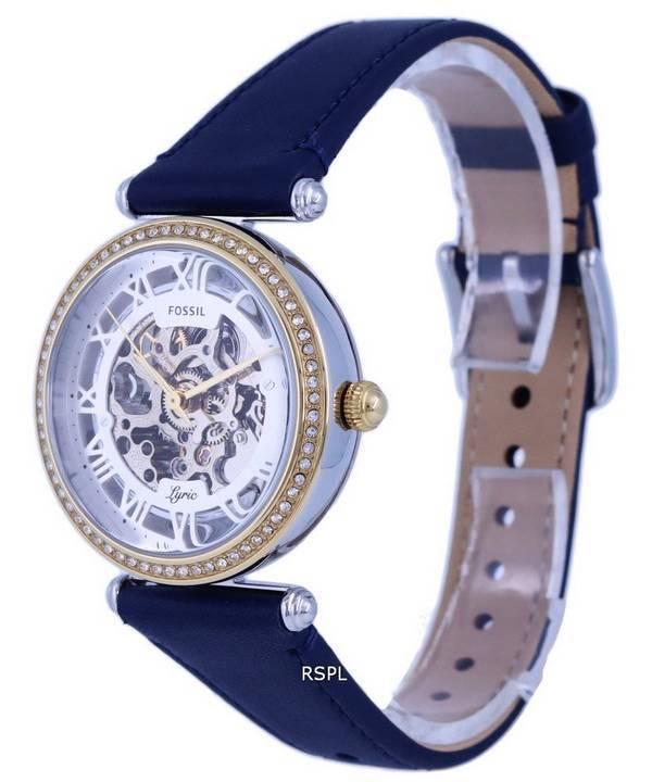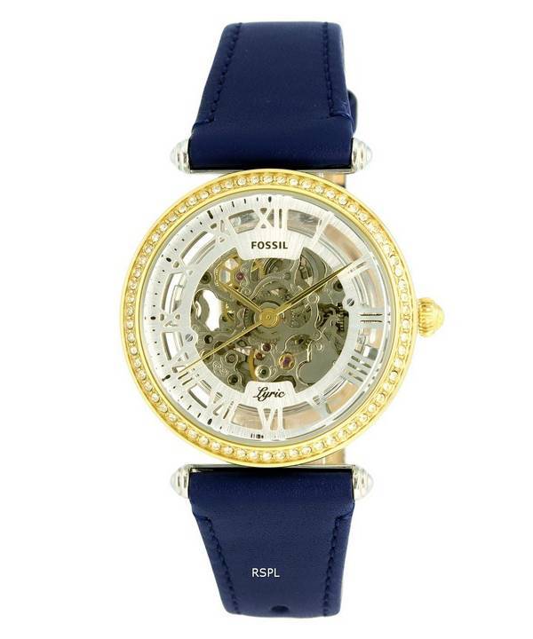 Fossil Lyric Crystal Accents Leather Skeleton Dial Automatic ME3199 Womens Watch