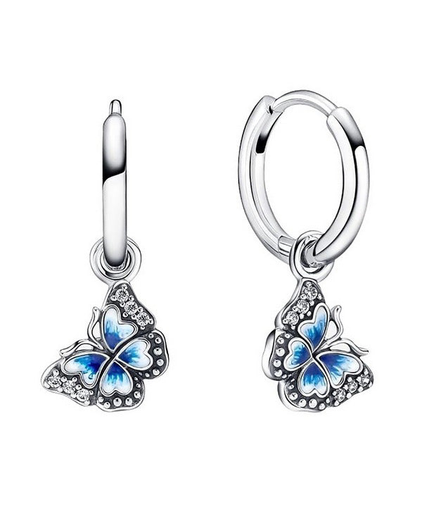 Pandora Blue Butterfly Hoop Earrings Sterling Silver 290778C01 For Women