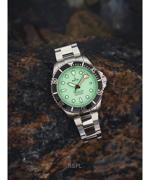 Ratio FreeDiver Sapphire Stainless Steel Green Dial Automatic RTF049 200M Men's Watch