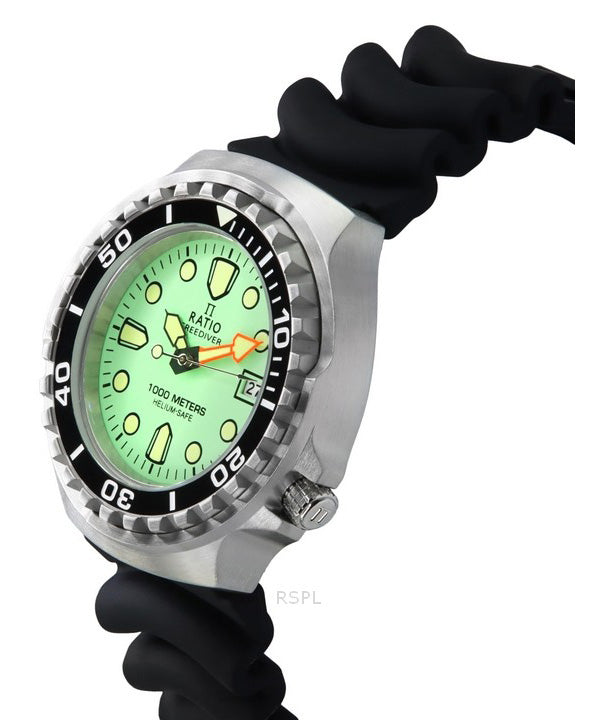 Ratio FreeDiver Version 02 Helium Safe 1000M Sapphire Quartz Mint Green Dial 1038EF102V-GRN-V02 Men's Watch