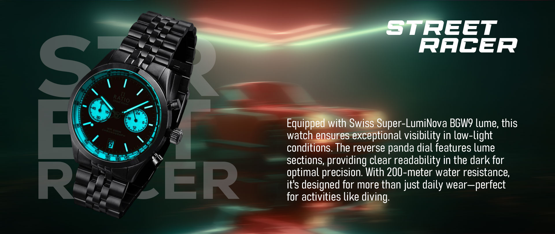 Ratio Street Racer Chronograph RTC019 200M Reverse Panda Dial Watch