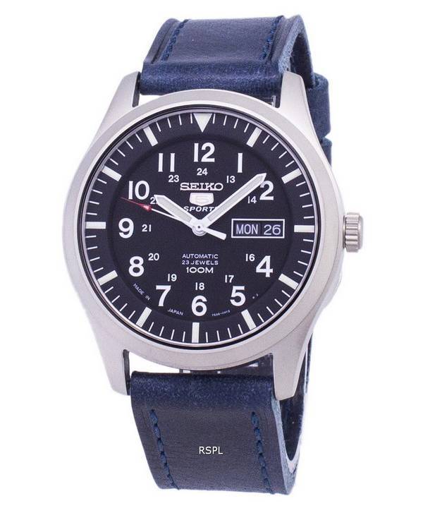 Seiko 5 Sports SNZG15J1-LS13 Japan Made Dark Blue Leather Strap Men's Watch